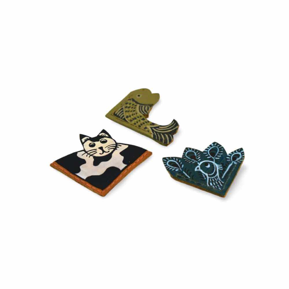 Színes cicás-halas-pávás bőr könyvjelző csomag