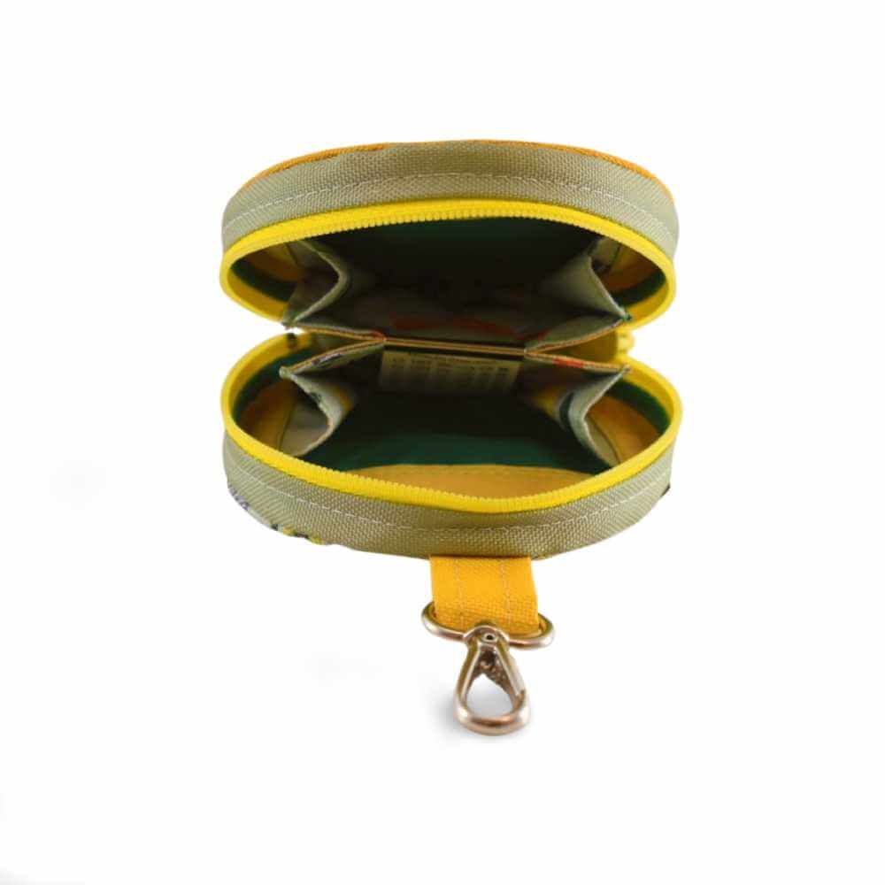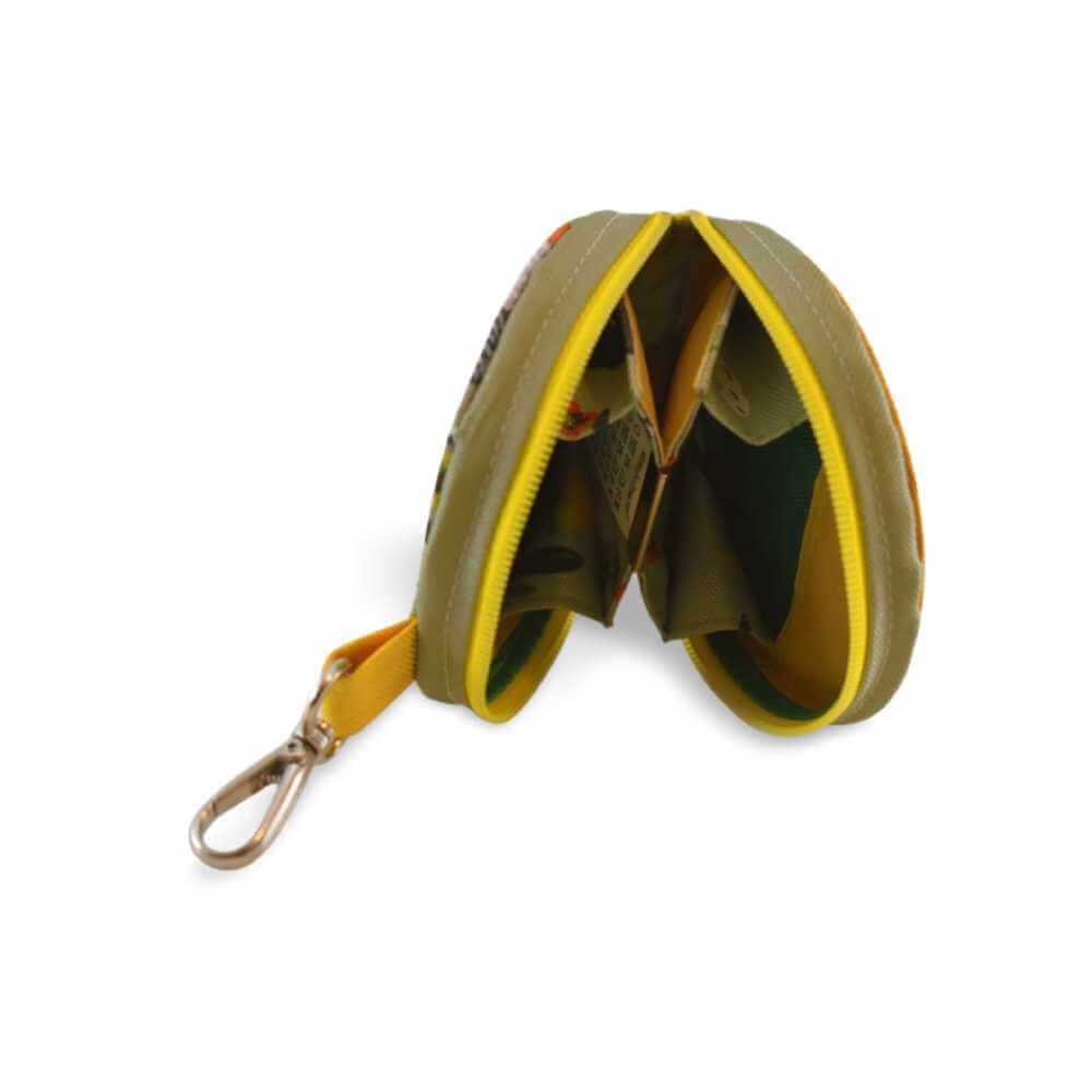 Ez a kör alakú kis pénztárca a játékos kreativitás és a környezettudatosság találkozása. A dizájnt az Igazgyöngy Alapítvány hátrányos helyzetű gyermekeinek rajzai és a Fancy Flea egyedi stílusa ihlette, így mindegyik egy kis darabka varázslatot és társadalmi felelősségvállalást hordoz.