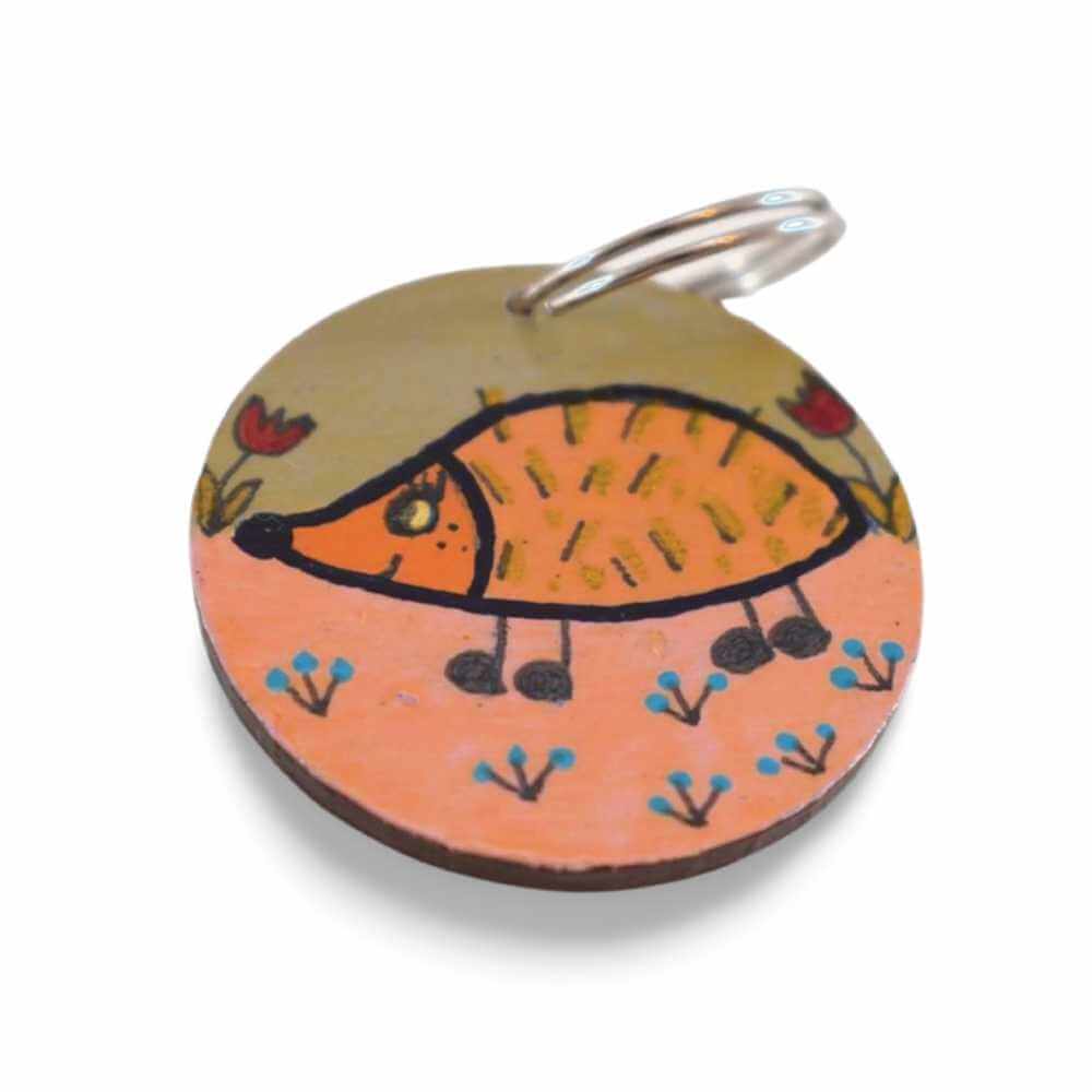 Igazgyöngyös gyermekrajzok ihlette mintával díszített fa kulcstartó. A terméket a toldi Szuno műhelyben dolgozó asszonyok kézzel festik, ezért minden darab egyedi és nincs két egyforma belőle. Anyagának köszönhetően strapabíró, a lakkozásnak köszönhetően pedig időtálló. Praktikus akár a kulcsok, akár táskák jelöléséhez.