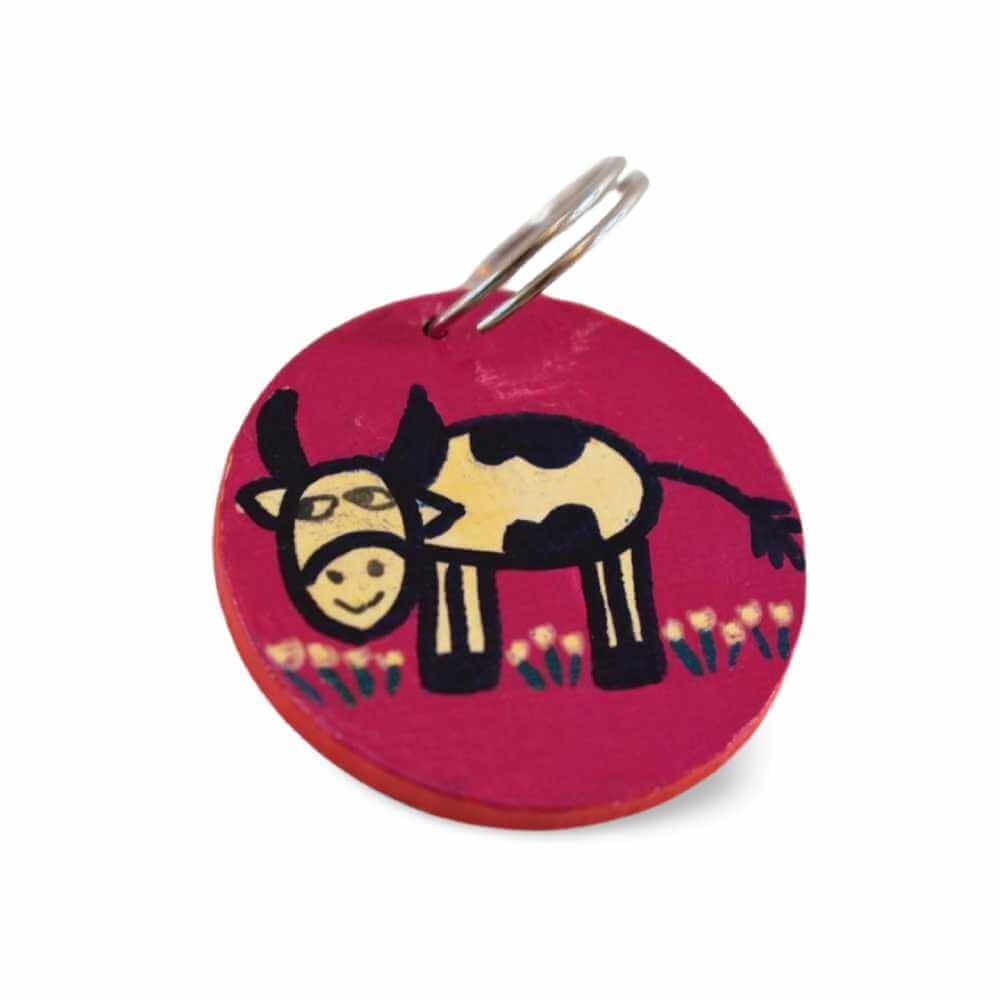 Igazgyöngyös gyermekrajzok ihlette mintával díszített fa kulcstartó. A terméket a toldi Szuno műhelyben dolgozó asszonyok kézzel festik, ezért minden darab egyedi és nincs két egyforma belőle. Anyagának köszönhetően strapabíró, a lakkozásnak köszönhetően pedig időtálló. Praktikus akár a kulcsok, akár táskák jelöléséhez.