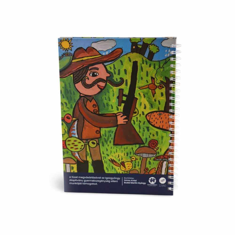 Igazgyöngyös gyerekrajzzal díszített A/5-ös spirálos sima füzet (50 lapos)